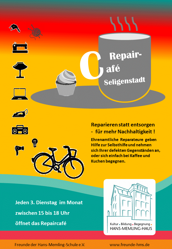 Jeden dritten Dienstag im Monat treffen sich die Initiatoren und fleissigen Helfer des Repair-Cafés und die Freunde der Hans-Memling-Schule e.V. bieten zudem Kaffee und selbstgebackenen Kuchen an – auch wenn es nichts zu Reparieren gibt: jeder ist herzlich eingeladen vorbei zu schauen!