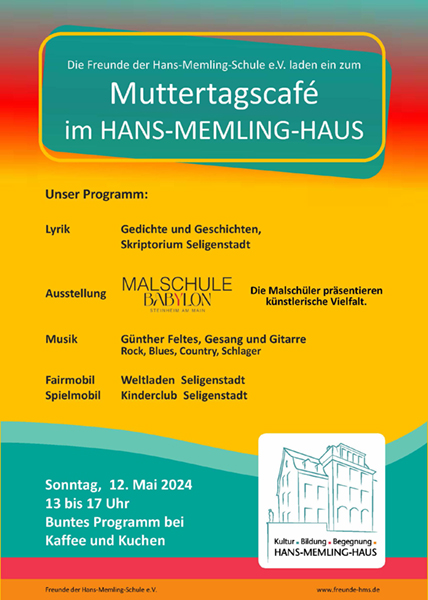 Die Freunde der Hans-Memling-Schule e.V. laden wieder herzlich zum Muttertagscafé am 12. Mai ins Hans-Memling-Haus ein.